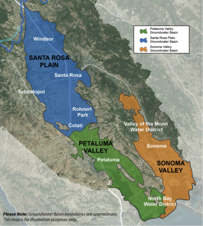 | Water Features: | Sonoma Valley Groundwater Subbasin; Petaluma Valley Groundwater Subbasin; Santa Rosa Plain Groundwater Subbasin; Russian River; Sonoma Creek; |