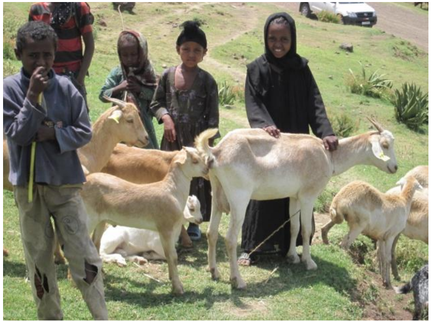 The types of technology transfer varied between the programs, ranging from technological devices to improve irrigation or monitoring to knowledge transfer programs, such as a program to demonstrate and promote drought resistant livestock and crops. Here, children exhibit goats their family obtained through the CwDCC program. (UNDP ALM Report, 2012)