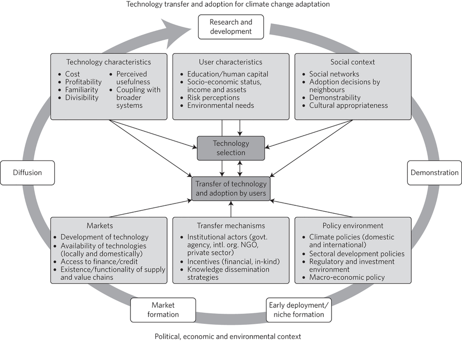 Historically, ‘technology transfer’ has been used to connote ‘North-South transfer’ or transfer of ‘hard technologies.’ However, knowledge transfer and capacity building are an important component of technology transfer, and the use of technology in addressing climate adaptation needs to incorporate tacit knowledge, behavior changes, and broad consideration of the types of technology that may be useful for adaptation in a specific location.
